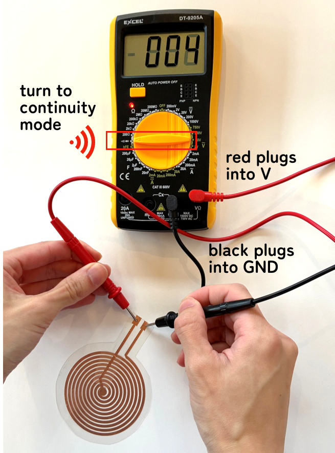 Use multimeter to test if there is shortcut from the two ends of the coil: Multimeter tutorial: measure continuity. Press tight your copper tapes.