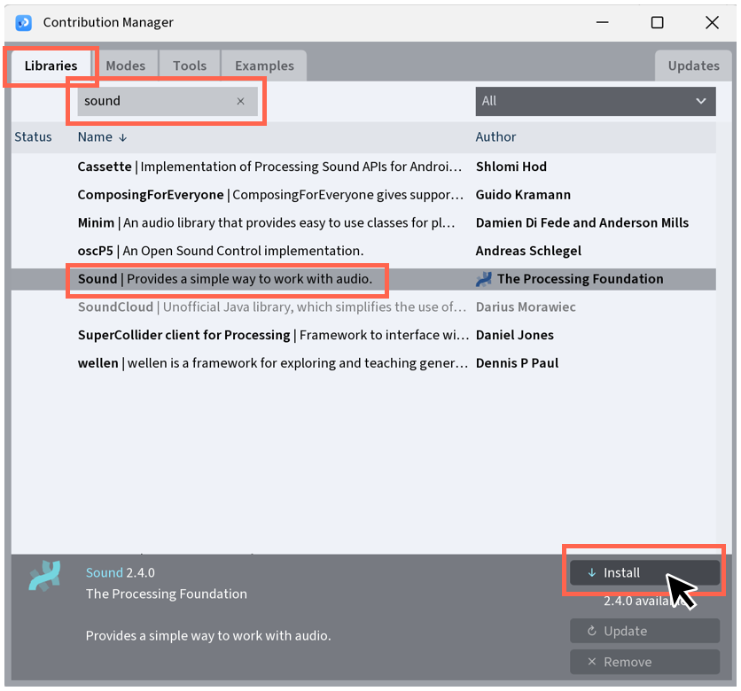 Open Processing and install Sound library