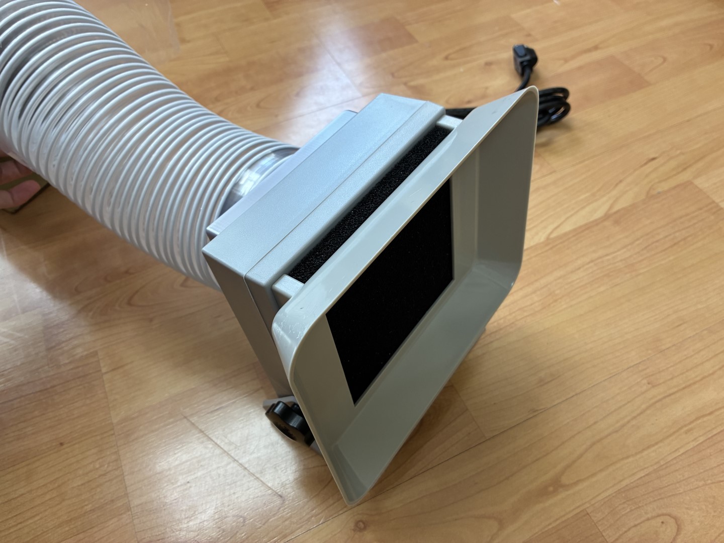 Connecting a standalone fume extraction fan (JF628 活性碳排煙過濾機) to a wall mounted pipe (4 inch). 3D model (STL) here.